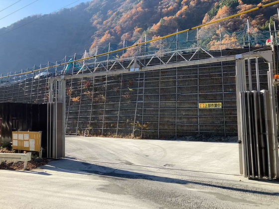 早川町内奈良田地区発生土仮置き場(2024年12月)