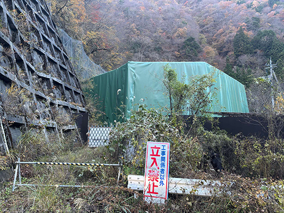 早川町内奈良田地区発生土仮置き場(2025年12月)
