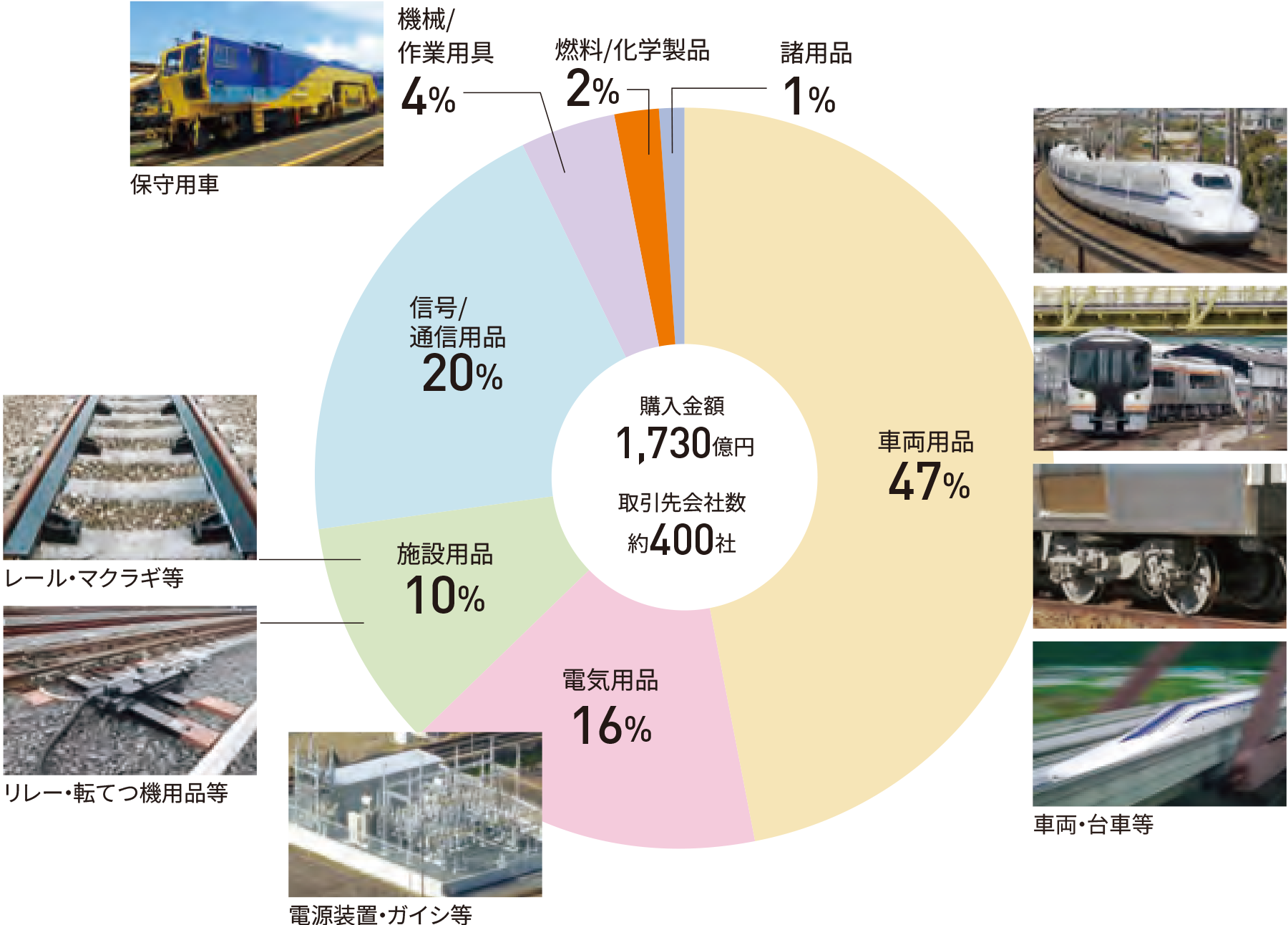 取引先は、鉄道の安全を守り抜くための“パートナー”であり、製品の品質を維持・向上しながら継続的かつ安定的な取引関係を構築することは、当社が高い品質の製品を適正な価格で調達することを可能とし、その結果として、取引先を含めた日本の鉄道関連事業全体の強化・発展に寄与するものと考えています。