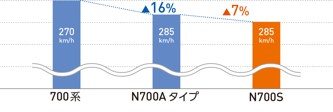 ATCとブレーキシステムを改良し、地震時のブレーキ距離をN700Aタイプから5%短縮します。
