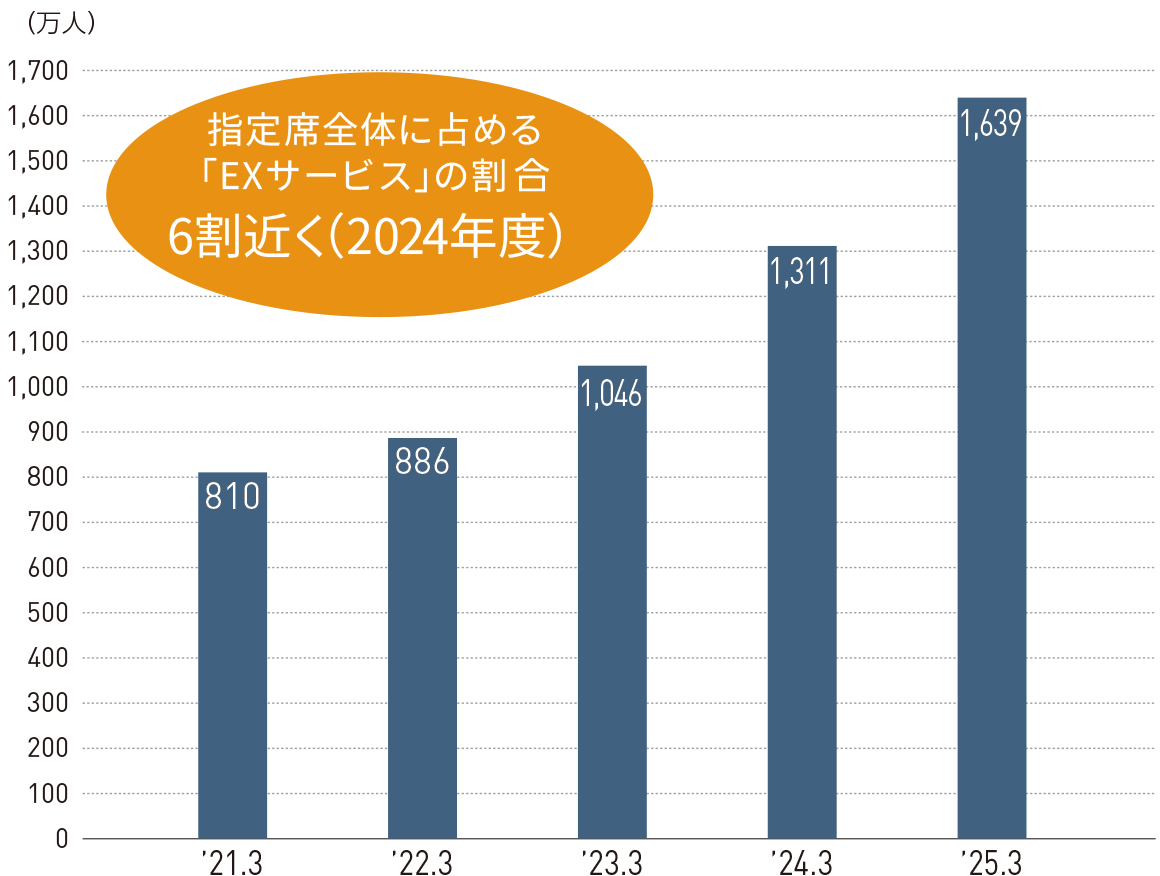 同時期には、1年前から新幹線の指定席をご予約いただけるようにしたほか、「EXサービス」を利用してチケットレスで乗車いただくお客様を対象に「EXポイント」を開始しました。